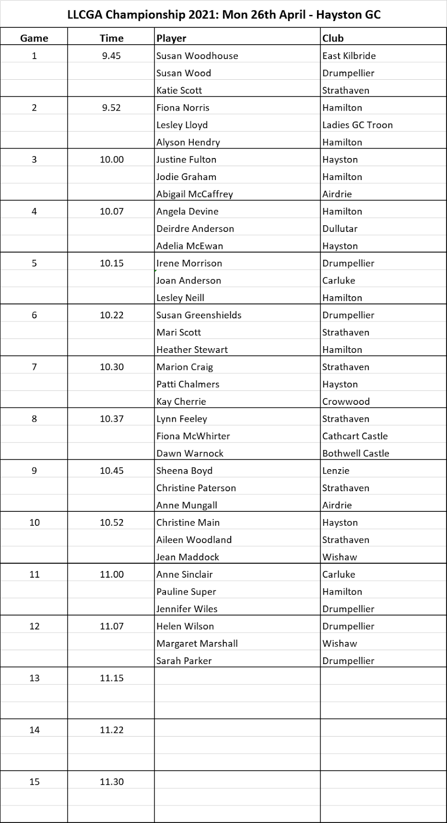 Unfortunately a number of players are unable to play in the Match Play. The following are the qualifiers for the Championship Matchplay